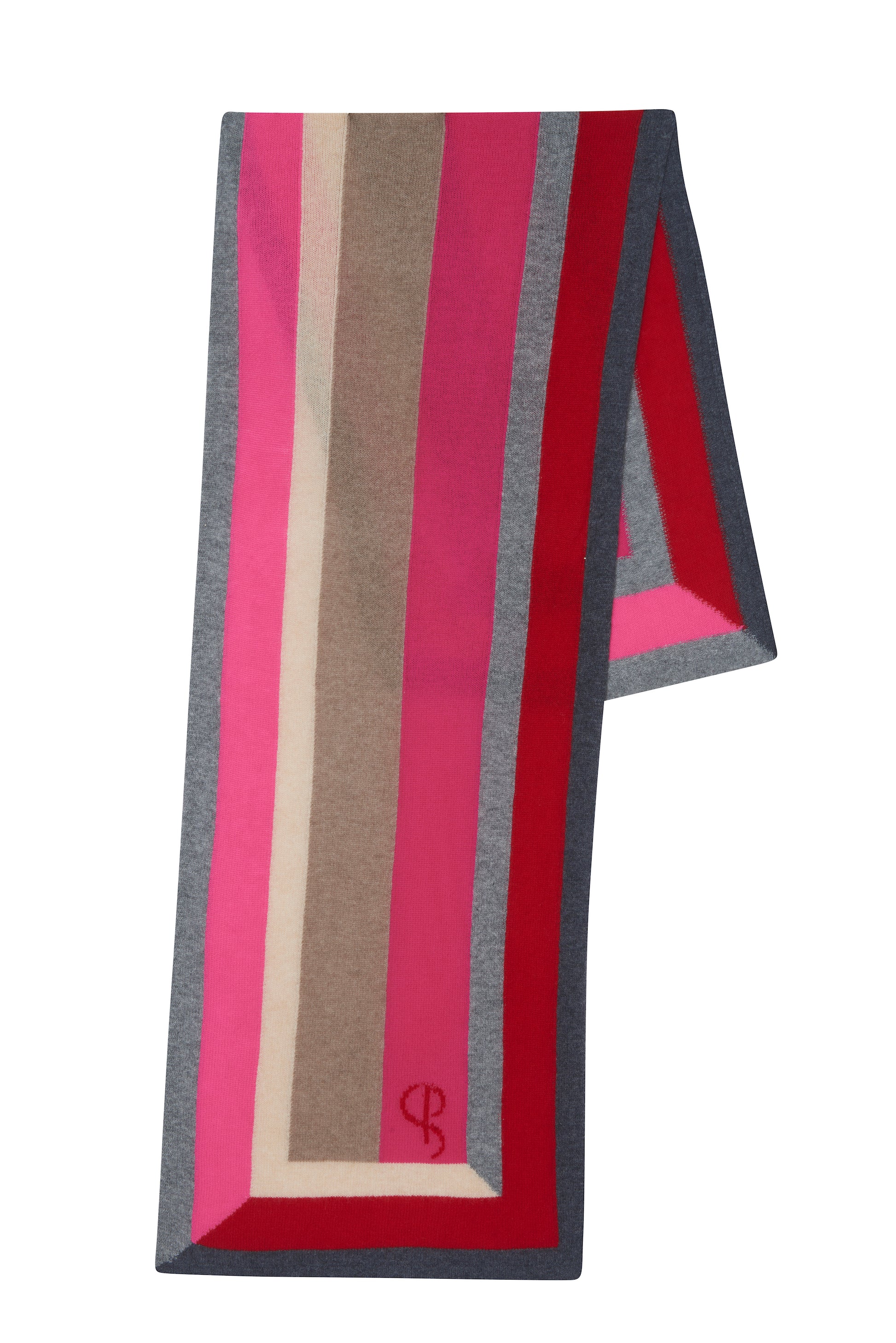 Scarf in 100% cashmere, a luminous and joyful harmony of pink, fuchsia, nude, and gray evokes the freshness of springtime, softened by nude tones and subtle fruity nuances.